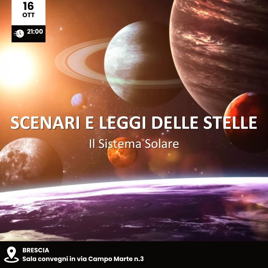 “Astronomia: scenari e leggi delle Stelle” è un ciclo di 6 incontri divulgativi di introduzione all’astronomia, in collaborazione col Museo di Scienze Naturali di Brescia.